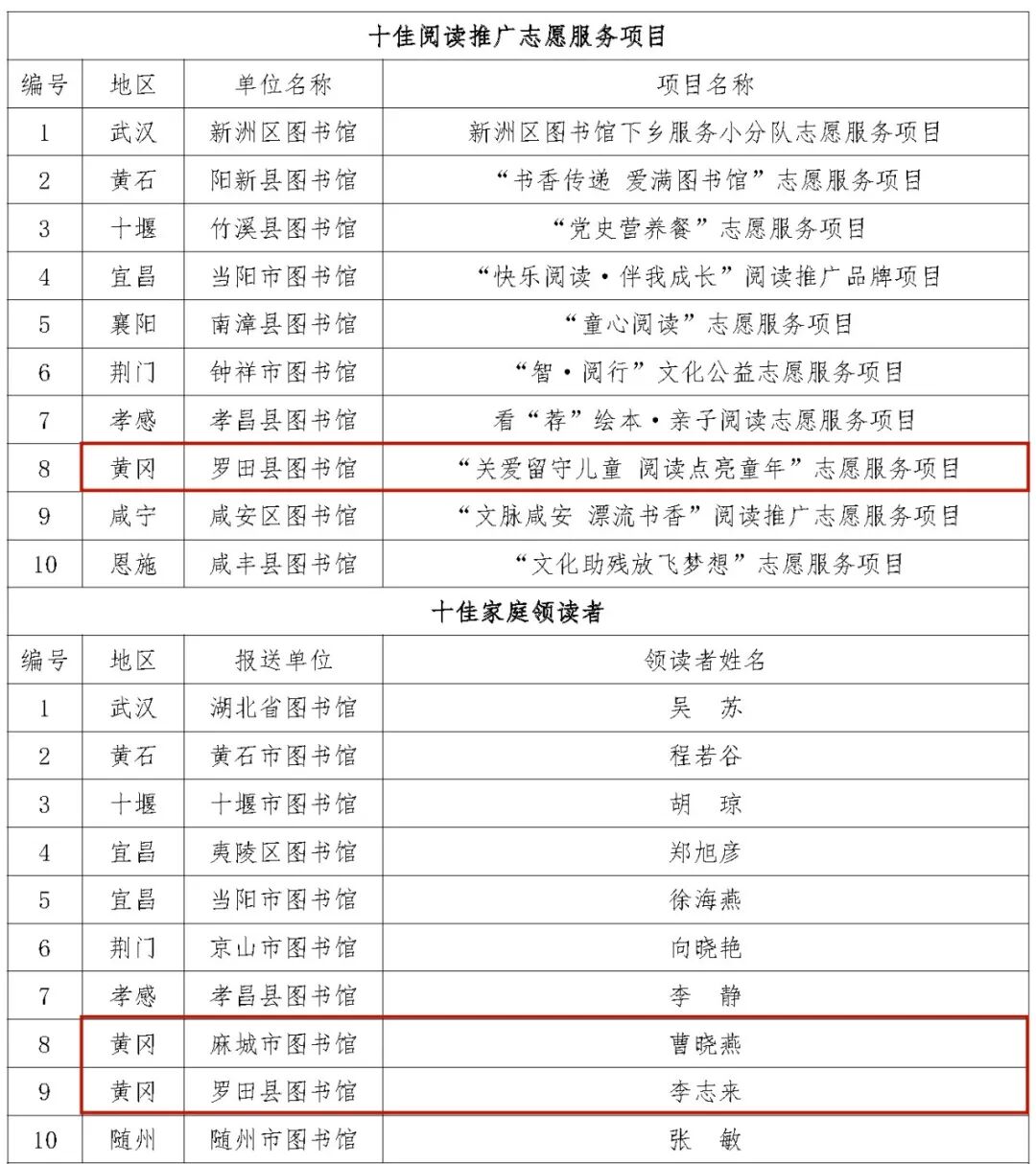 麻城市图书馆曹晓燕罗田县图书馆李志来荣获“十佳家庭领读者”