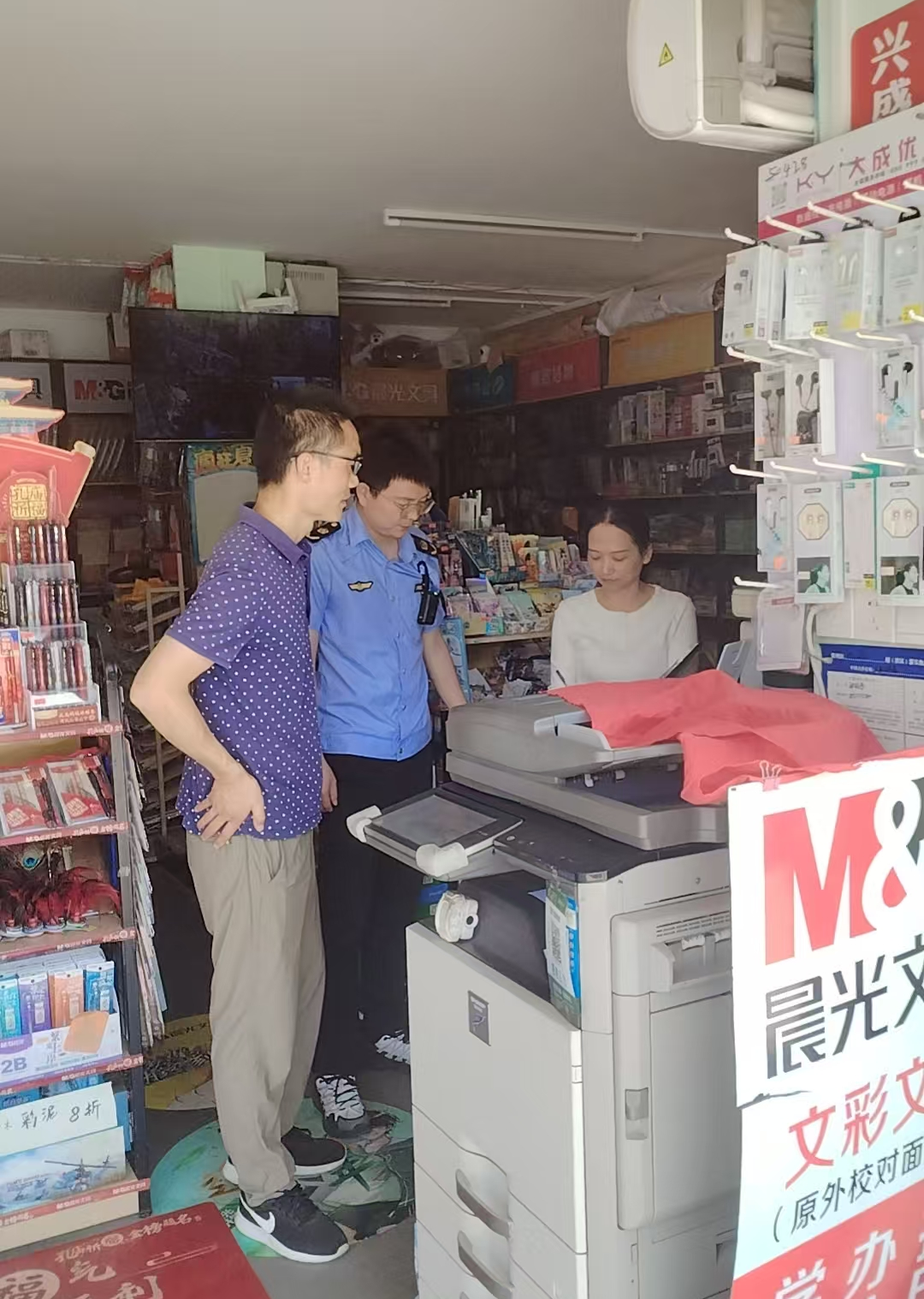 本次重点检查黄州区2025年高考考点周边文化场所,采取拉网、地毯式,不留死角。书店重点检查是否销售中小学教材、盗版等非法出版物,进货台账是否保存齐全;文具店、便利店是否销售淫秽、恐怖、血腥等不利于未成年人健康成长商品;印刷复制店是否超范围经营,是否存在盗印非法出版物违法行为;网吧、KTV是否存在侵权盗版违法行为,是否在门口粘贴未成年人禁止入内标识标牌,是否诱导未成年人消费等违法行为;电影院证照是否齐全,按期接受年检;消防设备是否完备有效;消防通道是否畅通;院线协议是否签订;此次联合检查共出动车辆1台,执法人员6人,检查重点文化市场21家,发现问题并现场督促整改。