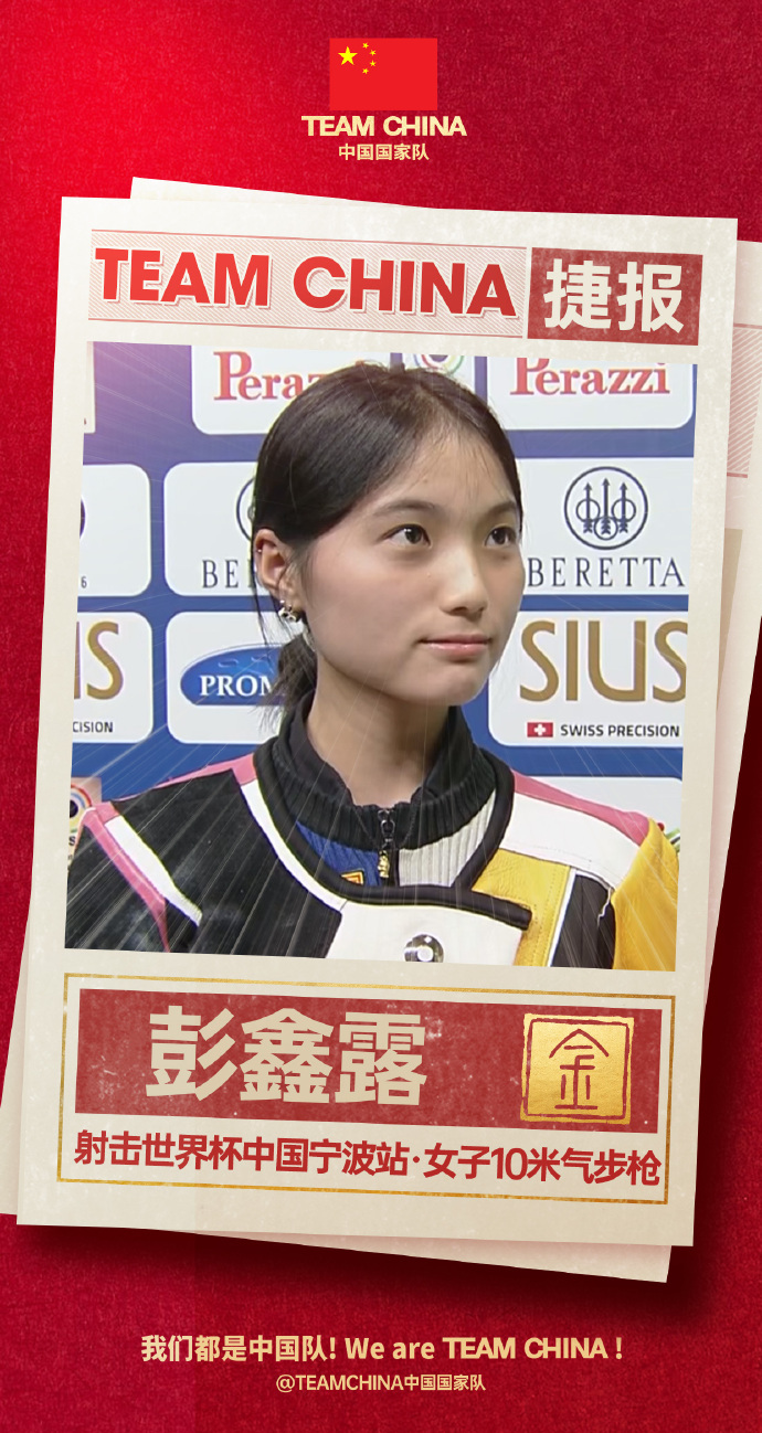 14日,射击世界杯宁波站女子10米气步枪决赛,中国16岁小将彭鑫露以255.3环打破世界纪录、世界青年纪录。