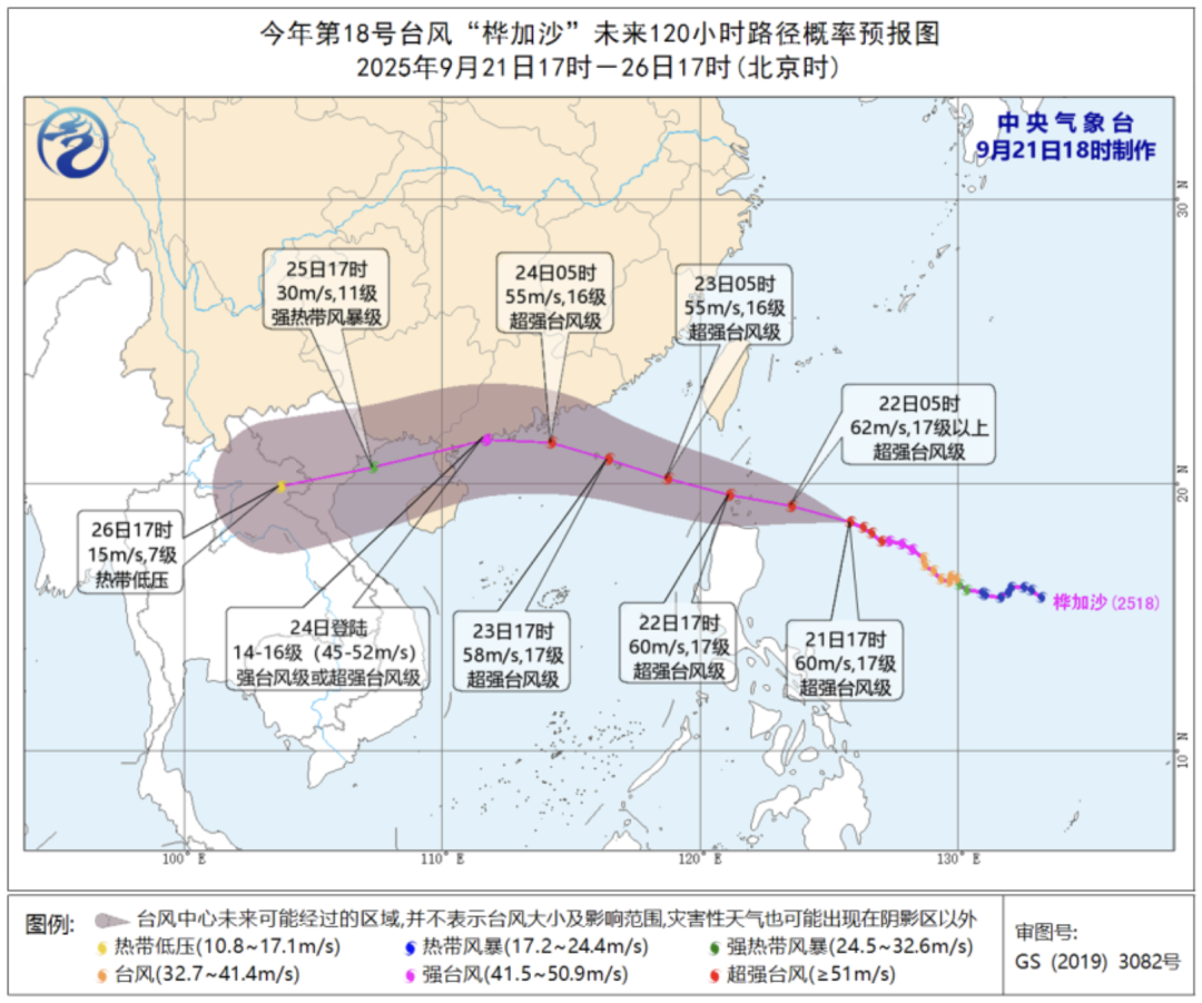 今年第18号台风“桦加沙”已加强为超强台风。气象部门研判,“桦加沙”强度强、风圈范围大,23日起将给南海中北部海面、广东省海面及中南部市县带来严重风雨浪潮的影响。南部沿海市、县需重点防范暴雨引发的城乡内涝、桥涵积水和交通中断,山区要高度警惕山洪、滑坡、泥石流等次生灾害。