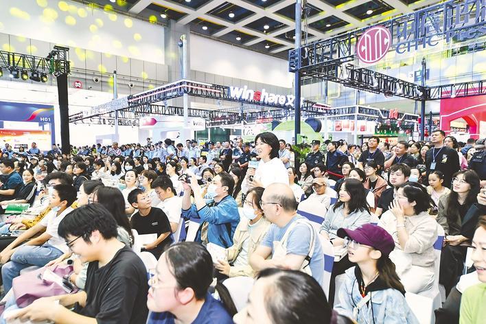 湖北日报全媒记者看到,展会现场人流如织,不少展台旁正举行着新书发布会、分享会等活动,吸引着读者围观驻足,市民纷纷推着购物车选购书籍。