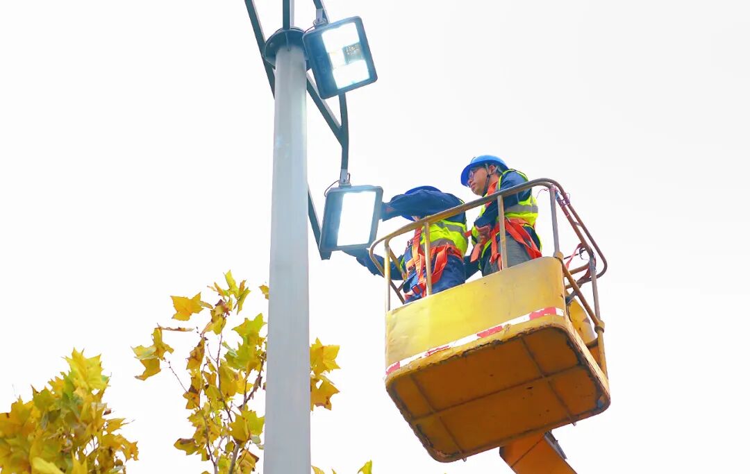 在仙女大道东段的路灯下,市政路灯工人正踩着梯子检修线路。他们还通过智能监控平台,实时掌握全市照明设施的运行状况。