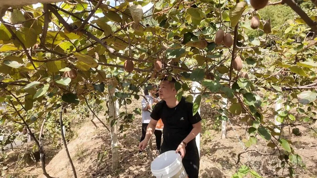 我们种了50多亩猕猴桃,今年亩产约2000斤。我们改良了技术,通过疏果只保留大果,使得糖分更集中,口感非常好。