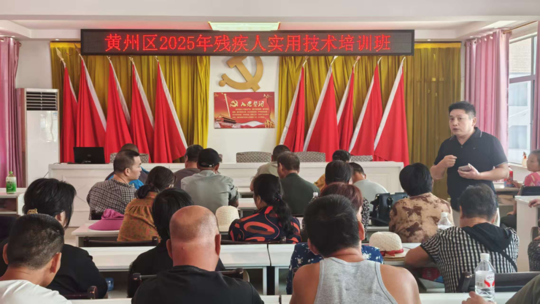 日前,黄州区2025年农村残疾人实用技术第二期培训班在陶店乡道仁湖村举行,进一步提升残疾人职业技能水平,增强残疾人就业创业能力。