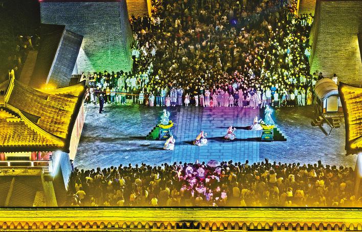 该县九昇文化旅游有限公司副总经理张闯介绍:“我们将夜游体验与文化演艺、特色餐饮、购物消费深度融合,游客乘坐毕昇画舫、金龙竹筏碧波泛游,不仅能欣赏两岸别致的山城夜景,还能近距离感受火壶、打铁花、风火轮等非遗表演。”