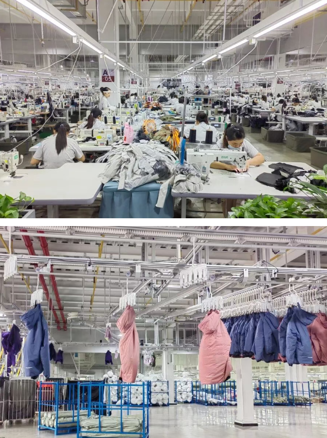 更具突破性的,是法良时装首创的“集中+分布”运营模式。作为法良湖北基地的总部工厂,黄冈基地集中了全链条核心功能——从智能仓储、精准裁剪,到自动化缝制、检品包装,所有关键环节在此高效协同;而其余8个分厂仅保留“缝制车间”这一单一功能,无需重复建设仓储、裁剪等配套设施。“这种模式让分厂用地面积减少了一半,还降低了跨厂区物流成本。”曹兰英算了一笔账:预计到2027年,整个湖北基地3500名员工可实现350万件年产量,人均产值较传统分散式工厂提升40%。
