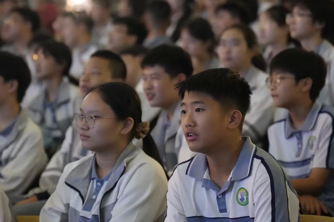 演出落幕,新的高潮接踵而至。剧场灯光重启,全体学子肃立,在老师的引领下齐声诵读《念奴娇·赤壁怀古》《定风波》等经典。千个青春嗓音唤醒千年诗章,激昂声浪震撼全场,不少家长与教师眼眶湿润。这不仅是一场集体诵读,更是年轻一代与中华优秀传统文化基因的深度同频。
