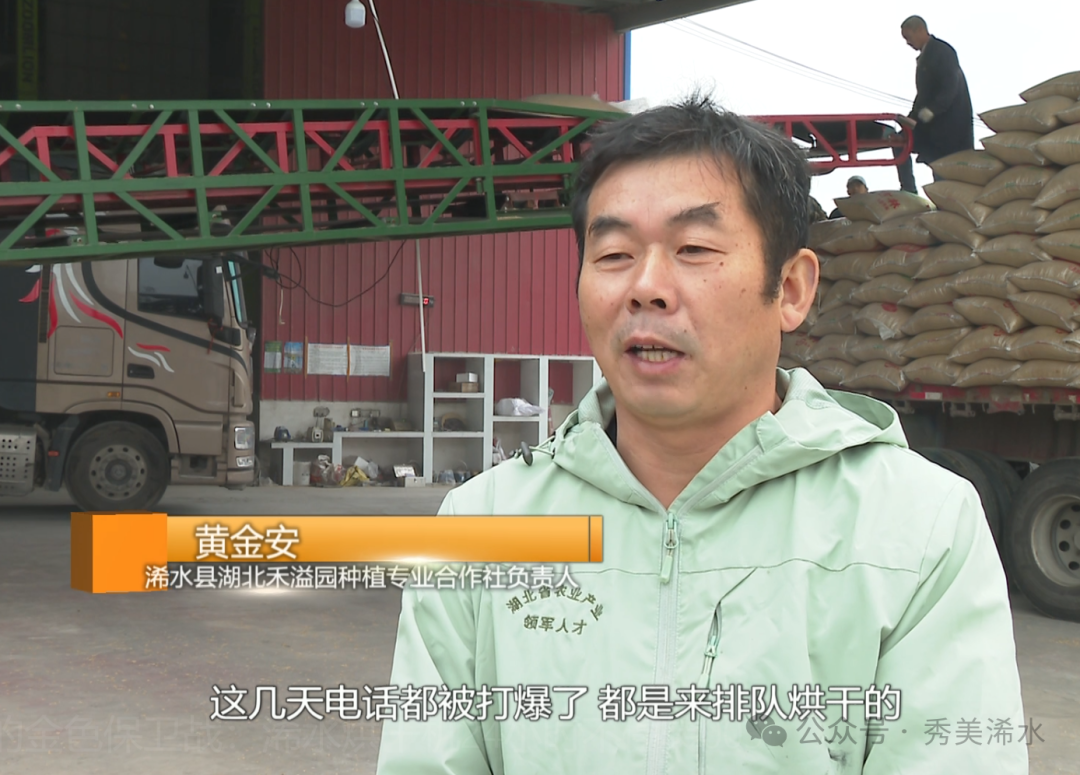 浠水县湖北禾溢园种植专业合作社负责人 黄金安:这几天我的电话被打爆了,都是排队来烘干谷子的。下雨天最怕谷子霉变,我们合作社8台烘干机全部启动,人歇机不歇,一天能烘干420多吨湿谷。现在跟老天爷抢时间,确保周边农户的粮食安全归仓。