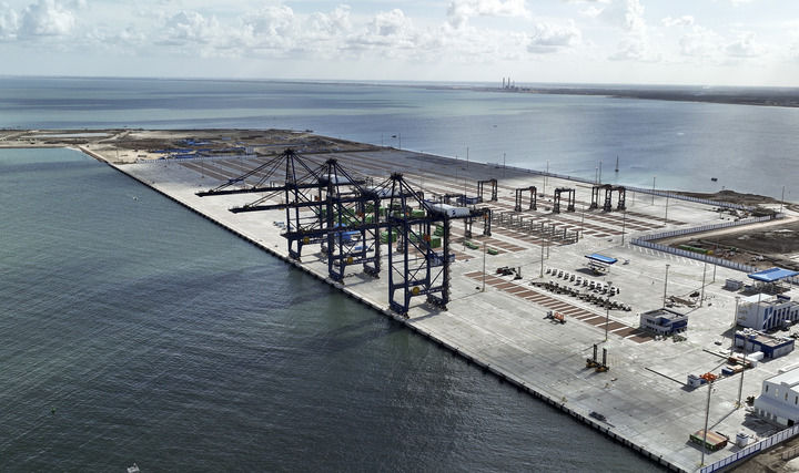 这是2023年12月1日在埃及亚历山大拍摄的由中国港湾工程有限责任公司承建的阿布基尔集装箱码头。新华社发(中国港湾工程有限责任公司供图)