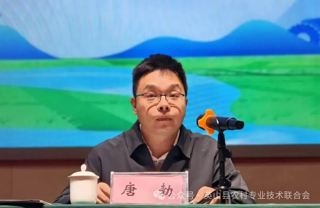 英山县委副书记唐勃同志代表英山县委、县政府致辞。他对联合会的成立表示热烈祝贺,并指出,联合会的成立是英山县深化农村科技服务体系改革、推动农业科技进步的重要里程碑。他希望联合会能够有效整合县域农业科技资源,搭建产学研用结合的平台,为英山县现代农业发展和乡村振兴提供强有力的技术支撑和人才保障。