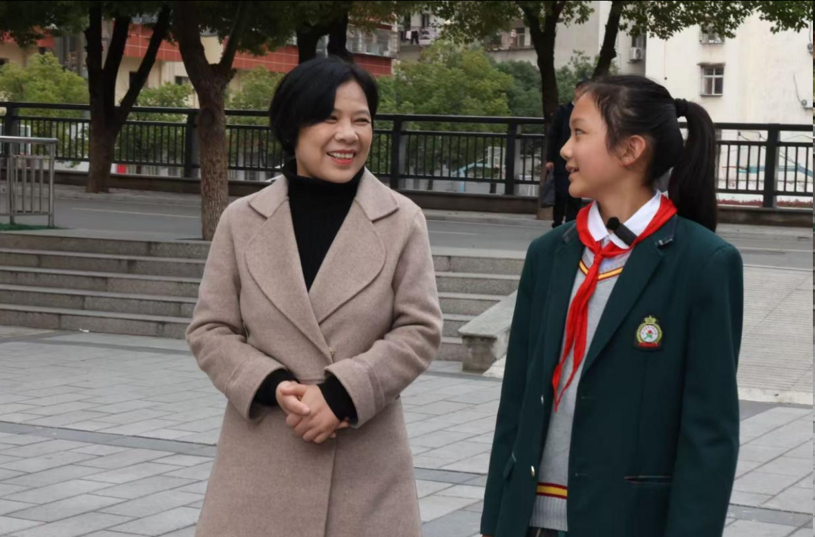 下午,推普队转赴将军城小学,采访林清芝烈士亲属林萌。她动情讲述林青芝与母亲冯正觉英勇就义的历史,再现革命先辈“坚守信念、不畏牺牲”的大别山精神。作为全国优秀少先队集体,该校持续开展“行走的思政课”,组织学生赴将军故居、革命遗址研学,让红色基因在实践体验中融入血脉。