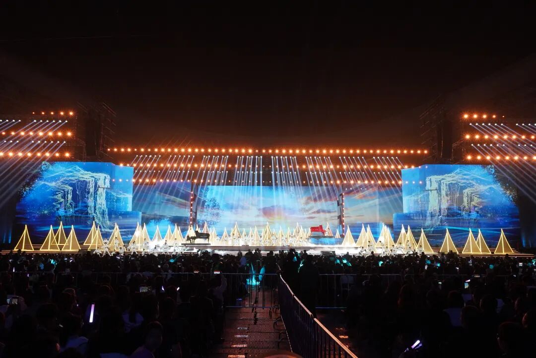 现场以“高峡出平湖 光影绽未来”核心理念、三峡大坝为原型,构建了总跨度达150米的巨型舞台。“正值中国电影诞生120年,我们希望借这场设计与创意,展现中国电影如长江般的蓄势与奔流。”舞美总设计郑博道出初心。