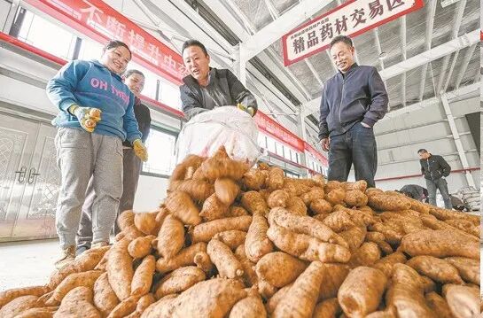 10月27日,在罗田县九资河镇中药材交易市场,农户在销售中药材天麻。近年来,罗田县利用充裕的土地资源、优良的生态环境、适宜的气候等有利自然条件,大力发展天麻、茯苓等特色中药材种植产业,通过“育种+种植+加工销售”全产业链发展新模式,增加村集体经济,促进群众增收致富,助推乡村振兴。