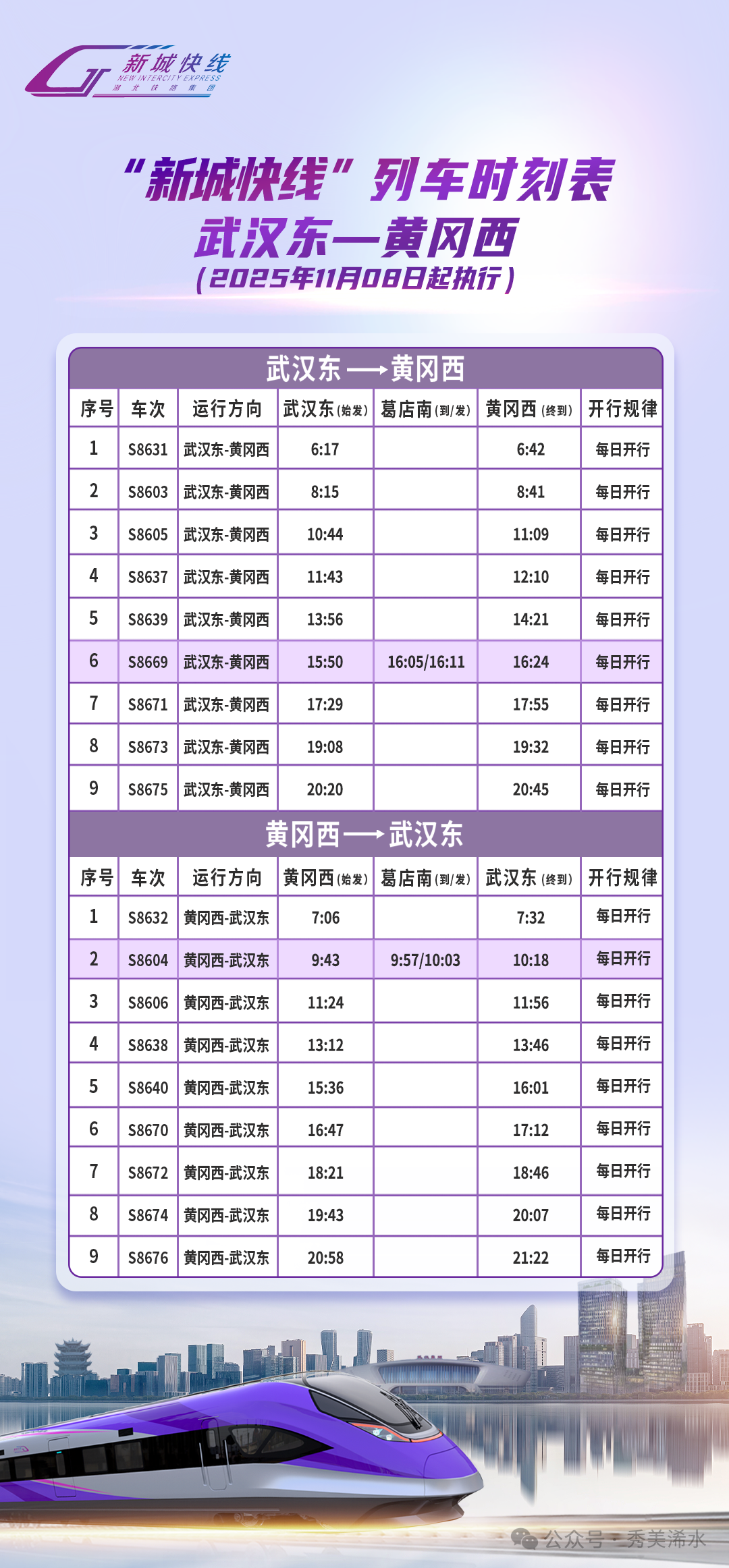 湖北铁路集团轨道运营有限公司发布公告:11月8日,“新城快线”葛店南站开办客运业务,每日有4列“新城快线”列车停靠葛店南站。详情