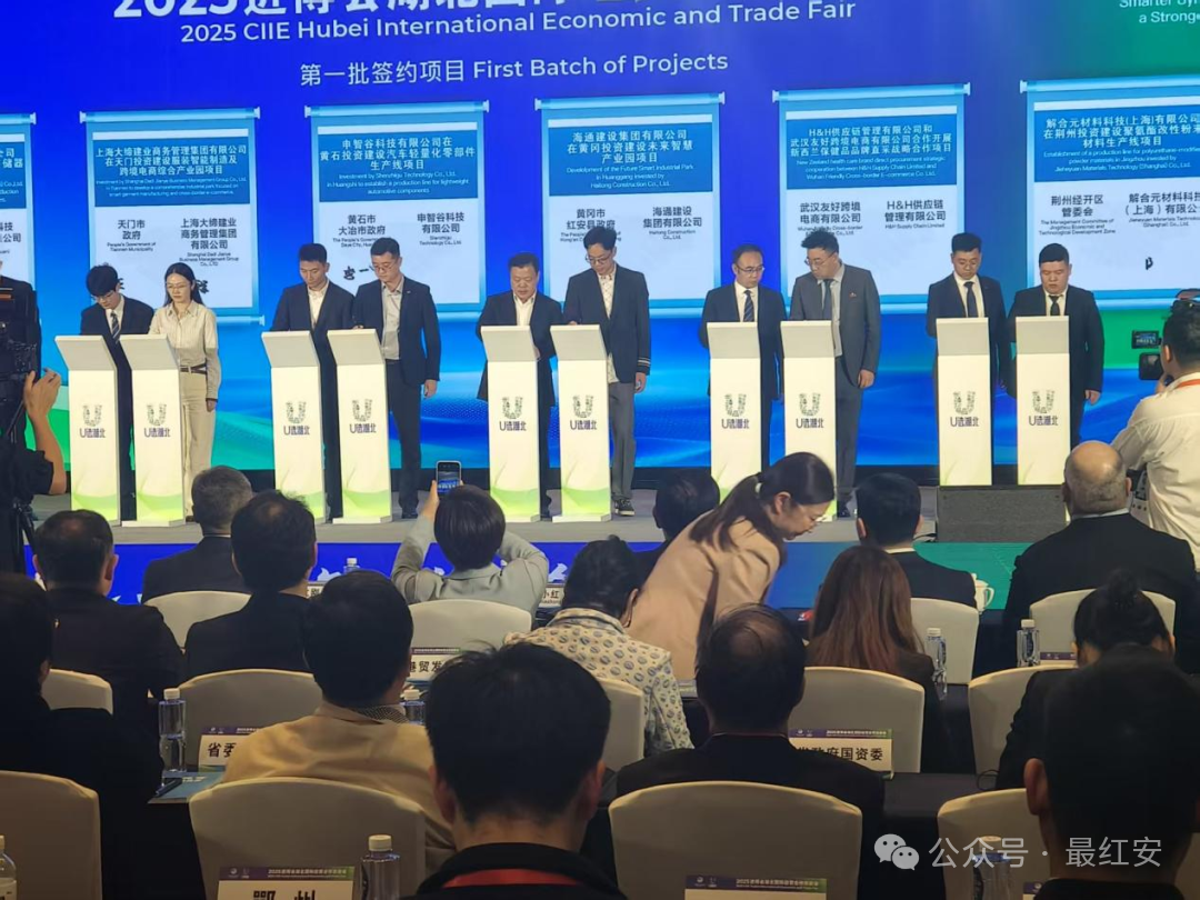 11月5日,第八届中国国际进口博览会在上海国家会展中心举行。进博会上,湖北举行了“支点湖北 智链全球”2025进博会湖北国际经贸合作洽谈会。在重点项目现场签约环节,落户红安的海通建设集团未来智慧产业园代表黄冈市在全省签约,成为红安对接国际经贸合作的重要成果。