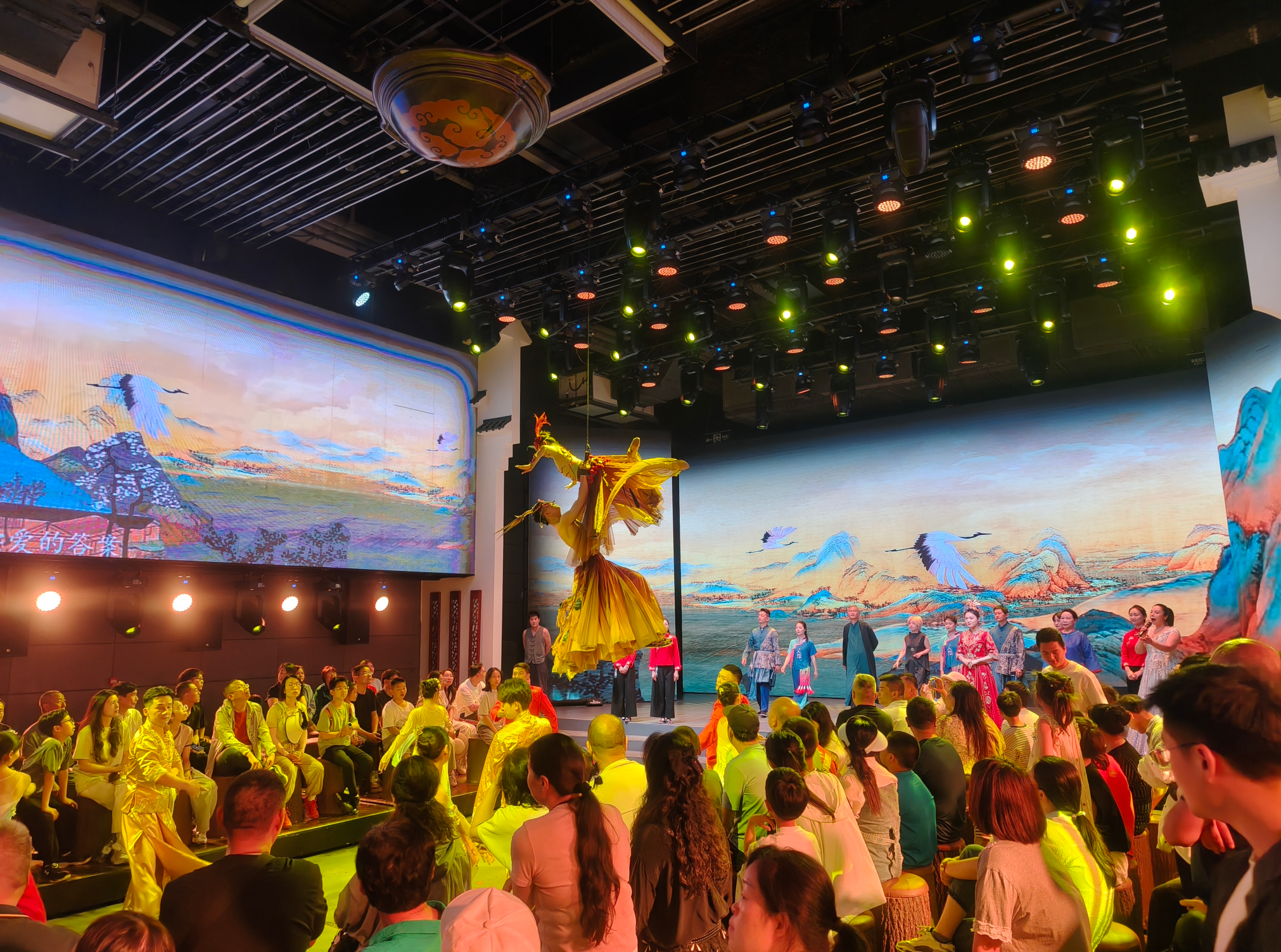 自2012年起,罗田将“京剧三余”文化作为强县工程,先后建成三胜广场、三胜剧场、余三胜纪念馆等载体,打造鸠兹古邑文旅休闲街区等活态空间。剧目创作上,沉浸式音乐剧《不识·余三胜》运用360度环绕舞台与科技舞美,将京剧唱腔、脸谱等元素融入现代叙事,既降低了观剧门槛,又彰显艺术内核,成为鸠兹古邑常态化演出的“爆款”剧目。县旅投公司还创排《情恋大别山》等剧目,用沉浸式演出让传统艺术贴近群众,为“二重奏”提供了坚实保障。