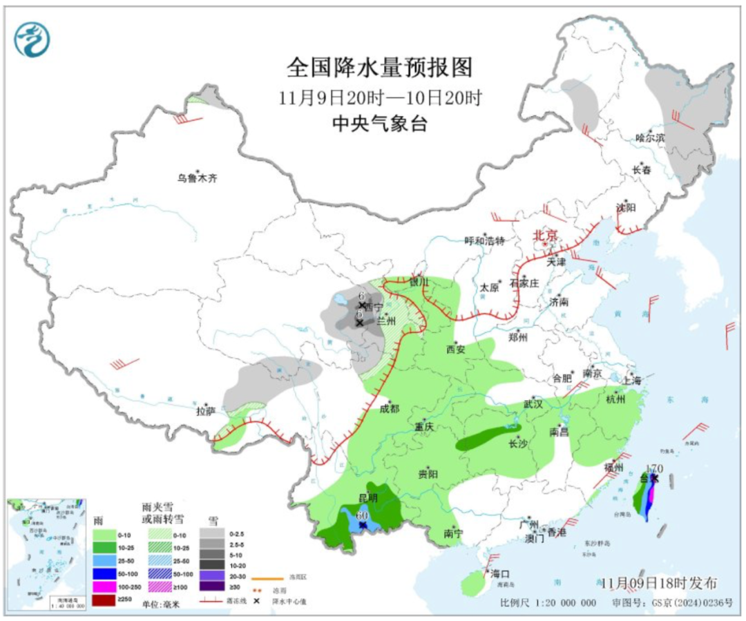 中央气象台预计,9日20时至10日20时,新疆北疆北部、内蒙古东北部、东北地区东部、西藏东北部、青海东部和南部、甘肃南部、西北地区东北部、川西高原北部等地部分地区有小雪或雨夹雪,其中,青海东部等地部分地区有中到大雪。