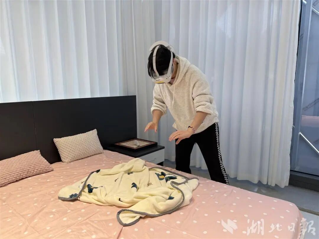 打开训练室的门,仿佛进入了一个“科幻片场”:有人戴着VR眼镜,在虚拟场景中一遍遍模拟“叠被子”“放冰箱”;有人站在真实机器人旁,引导它完成“倒水”“出餐”等动作。他们的任务,就是用真机一遍遍重复人类日常动作,采集数据,“喂”给AI大模型,让它学会“自己动”。