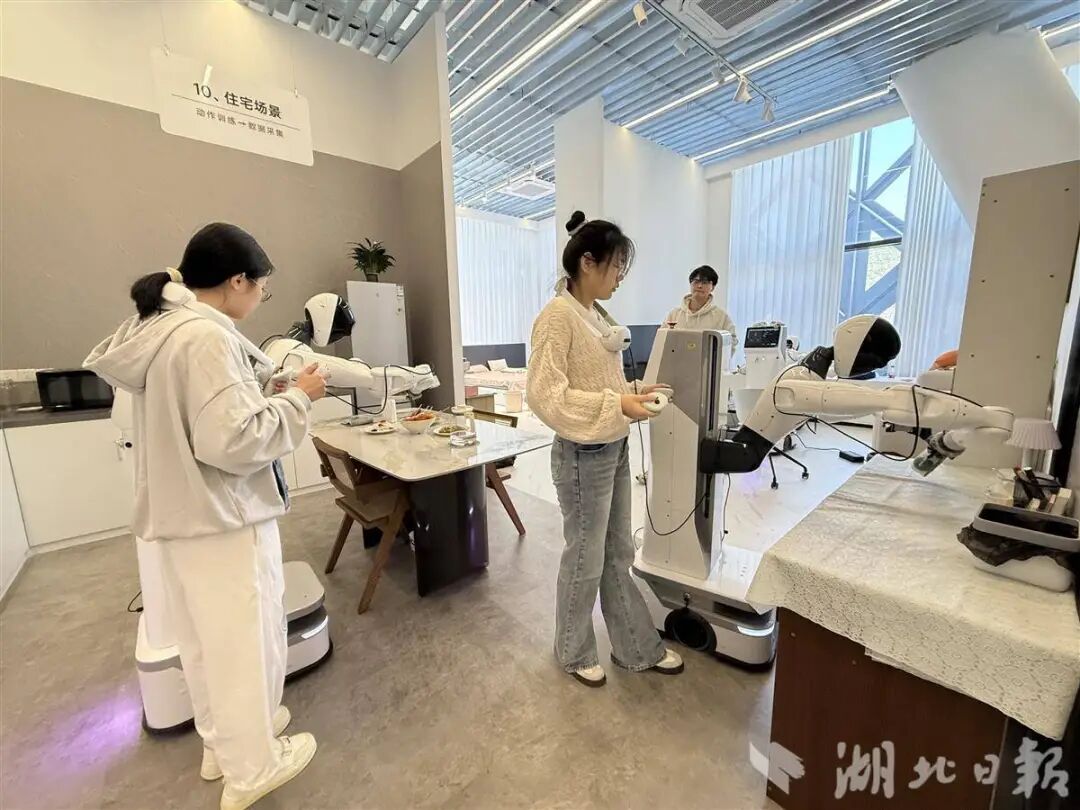 “仿真是基座,真机是灵魂。”产业园负责人胡龙丹解释,真机数据更贴近真实场景,是不可替代的“优质食材”。目前,湖北人形机器人创新中心就采用全真机采集方式,从家居整理到餐厅出餐,从工业搬运到商业理货,训练师们在23个生活化场景中,为机器人“备课”。