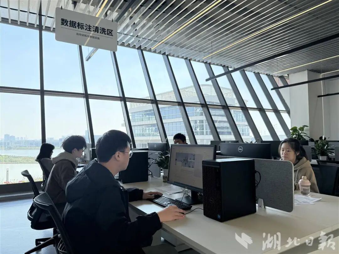 他所在的地方,是全国规模最大的人形机器人创新中心——湖北人形机器人创新中心,面积1.2万平方米:在7000平方米的一期空间里,分布着动作训练、数据采集和应用实践三大功能场,以及人才培养基地;而5000平方米的孵化器则充满活力,既有大学生在教室里接受实训,也有产业链企业和配套金融、服务机构入驻聚集,共同构建了一个从技术验证到产业孵化的完整生态。