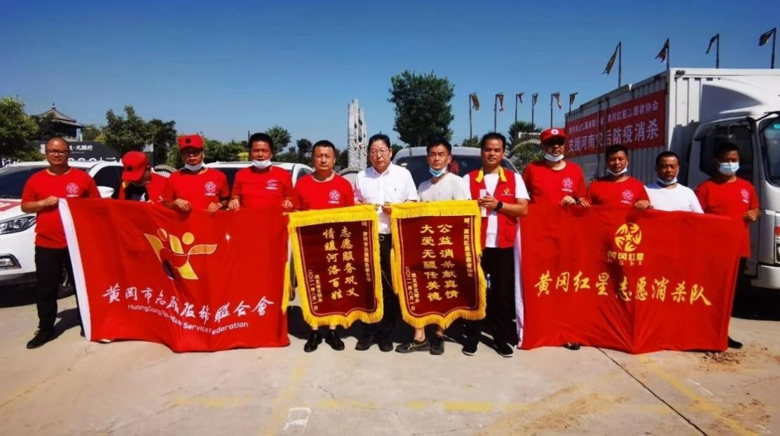 7月中旬,河南遭遇严重洪涝灾害,黄冈市志愿服务联合会闻讯而动,积极向社会发起倡议募集救援物资,主动请缨向河南捐赠救灾物资和开展灾区疫情消杀工作。