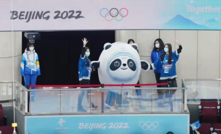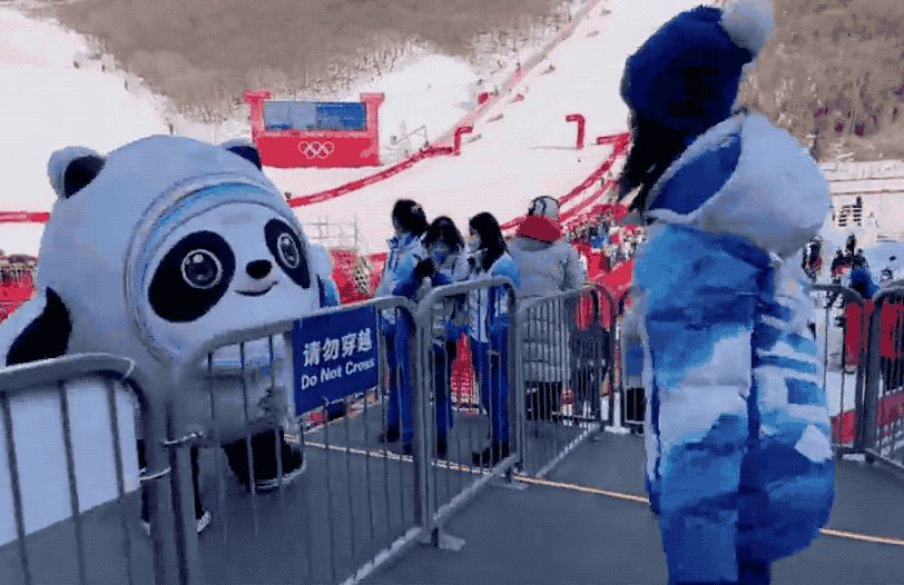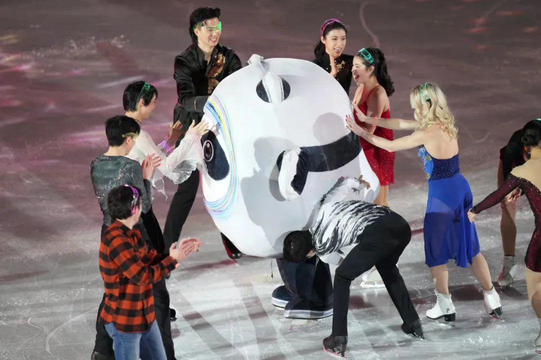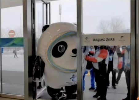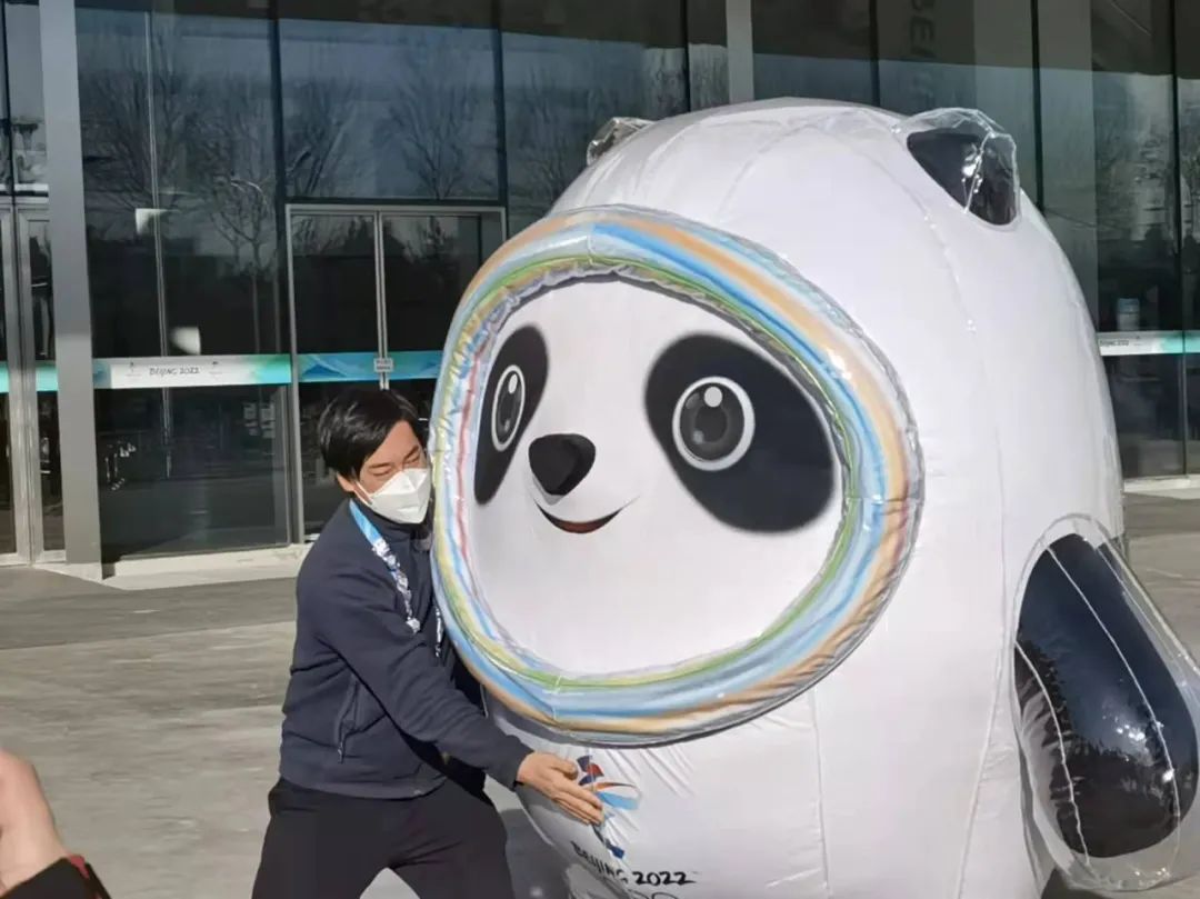 (日本电视台记者辻岗义堂拥抱冰墩墩)