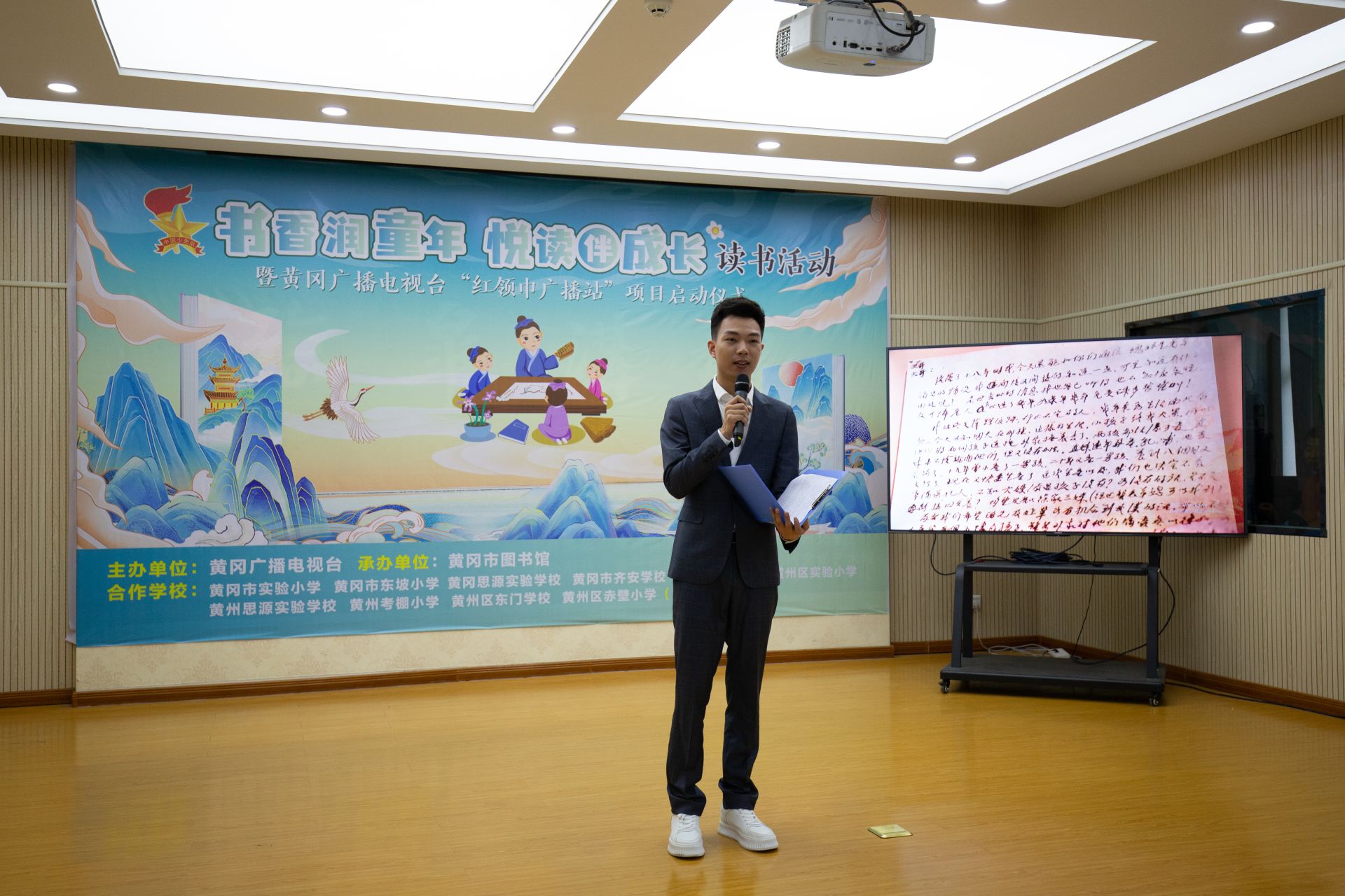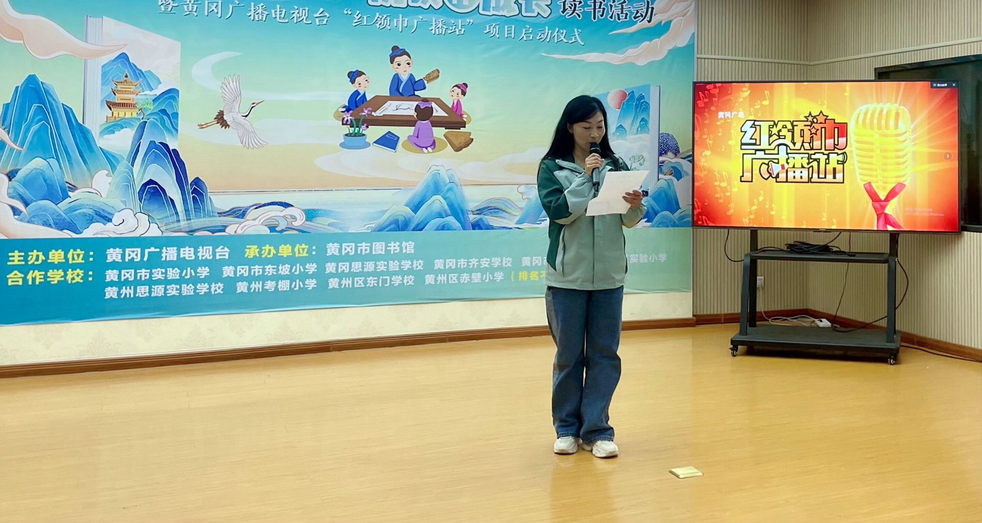 黄冈广播电视台广播中心主任邹俊、市图书馆党支部副书记刘红波致辞,介绍红领巾广播站联盟和本次活动情况。