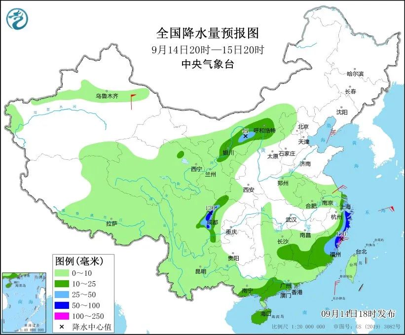 中央气象台预计,14日20时至15日20时,内蒙古河套地区、宁夏北部、陕西北部、江南南部和东部、四川盆地西部、华南南部等地部分地区有中到大雨,其中,浙江东部、福建东北部、四川盆地西部等地部分地区有暴雨或大暴雨。
