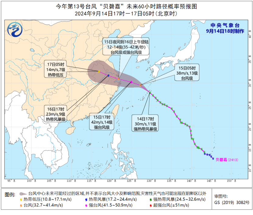 中央气象台14日18时发布台风橙色预警:今年第13号台风“贝碧嘉”(强热带风暴级)将于15日夜间到16日上午在浙江台州到江苏启东一带沿海登陆(台风级或强台风级)。